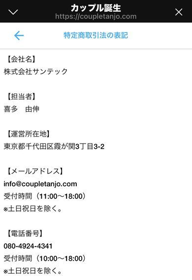 カップル誕生の会社情報は実在しないものを記載した違法企業