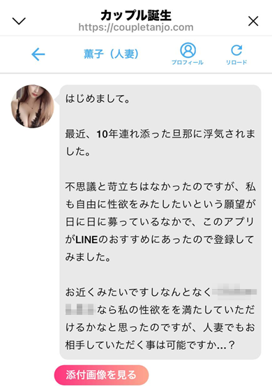 また不倫相手やヤリモクで会う場合にはプロフィール画像は設定しないのが普通です。それでメッセージのやり取りをして良さそうなら画像を送り確認し合うものです。それなのに旦那に浮気されたからっていきなり綺麗な美女のプロフィールって無理があります。