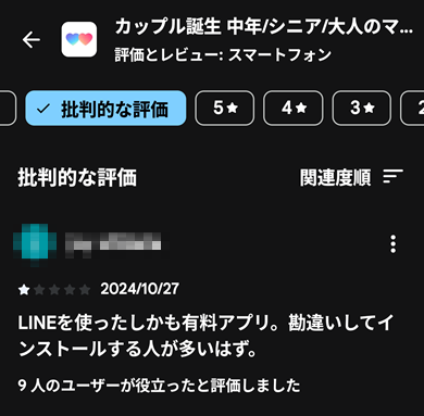 カップル誕生はラインを使ったウェブサイトなので口コミや評判は普通見れません。しかし今回の場合はアプリ版でも利用者を騙し集客していたので、偶然にも口コミが確認出来るようになっておりました。