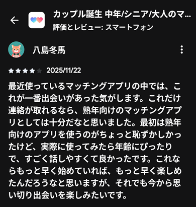 唯一あった実際にカップル誕生を使った男性の口コミ