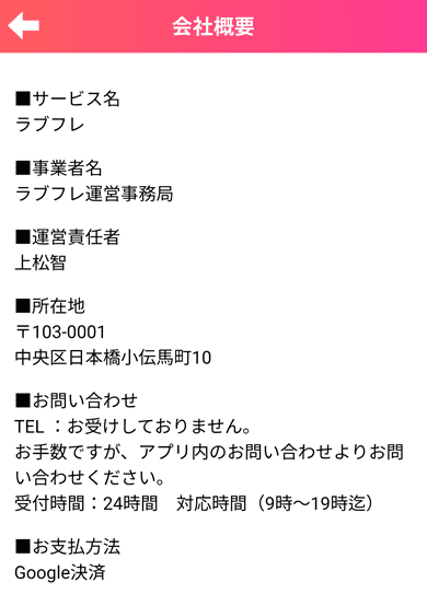 ラブフレの特定商取引法に基づく表記