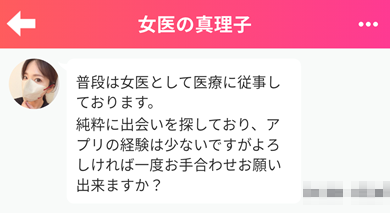 - 連絡先の交換や会う事が禁止されているので運営は規制解除とか言い出し多額の課金を迫って来る