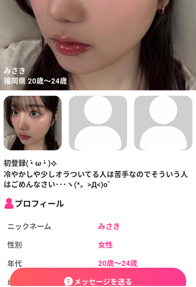 もうラブフレを使っている人なら同じ顔写真やプロフィールの人からメッセージを受けた人もいると思います。このアプリには一般女性はおらず全員が架空の人物となります。