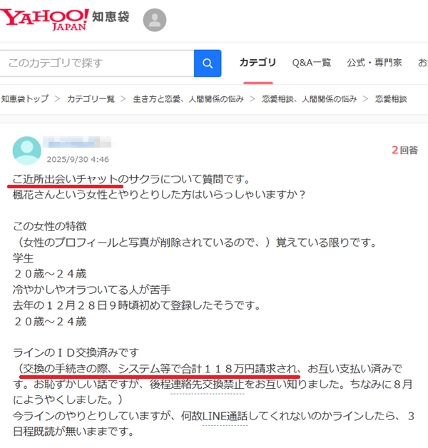 いくら課金をしても相手はサクラです。実在はしませんが男性とは丁寧に恋愛しているかのような演出をしてきます。多額の課金をさせておいて最後は音信不通となります。現に118万円の被害を受けた男性も居ます。