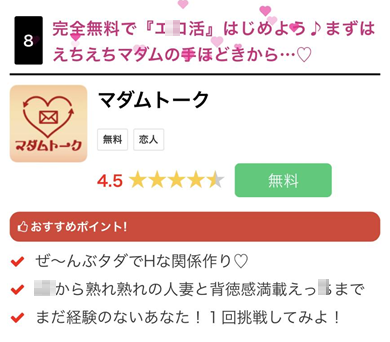 そしてだいたい内容は今まで有名マッチングアプリでは駄目だったけど、マダムトークでは女性とすぐに会えて肉体関係も可能だったと言ったものばかりになっています。