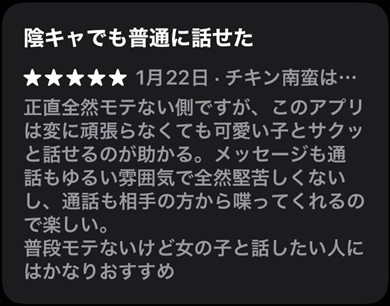 陰キャでも話せたとありますが、だからビジネスだから当然なんです。1分でも長く話せた方が稼げるので女性も頑張って間を繋ぎます。この「チキン南蛮は・・・」ってアカウントの方はモテないとの事です。