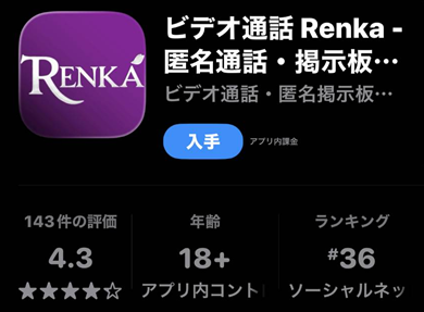 少し前からappleのstoreで見かけていたRENKA(レンカ)というビデオ通話アプリ。匿名でチャットや通話が出来ると当たり前の事をアピールされていて、他の類似アプリと何か違う点があるのかと疑問に思っておりました。