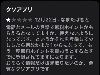 この運営企業のアプリ、前にもこんな口コミがありました。