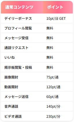 | ビデオ通話 | 230ポイント(184円)/分 |