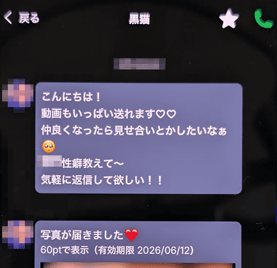 メッセージ1通だけ送るのに75円分のポイントって地味に高いですよね。女性が出会いを求めていたり本当の住所は貴方の近くと嘘をついてくるのは、1回でも多くやり取りをして報酬を得たいから。メッセージの後に画像や動画を添付しているのもそれが理由。