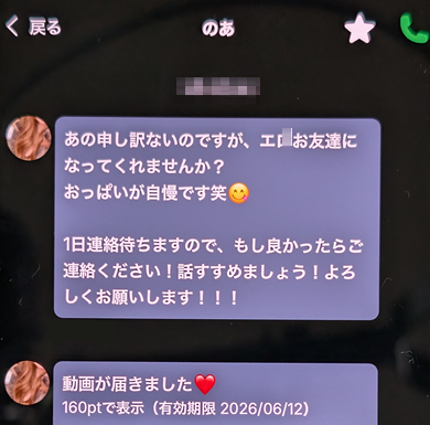 過去にも同じような手口で「もなか」というビデオ通話がありました。作りも手口もほぼ一緒なので同企業によるビデオ通話の可能性が高いです。