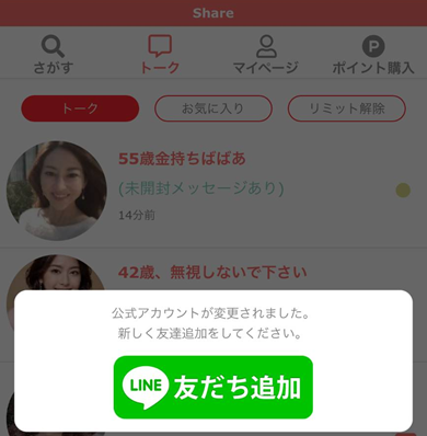 ラインに友達追加して利用するサービスはshare(シェア)以外にも無数にありますが全てサクラばかりで絶対に会えないので使わないようにして下さい。