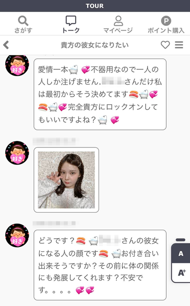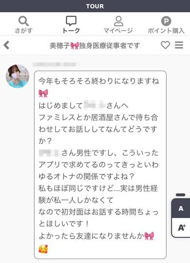 TOUR(ツアー)のサクラから届いた実際のメッセージ