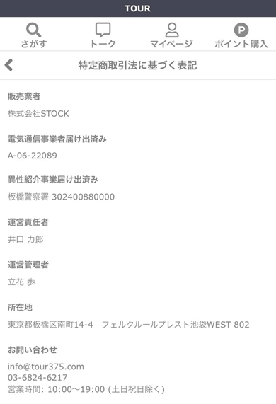 TOUR(ツアー)の特定商取引法に基づく表記