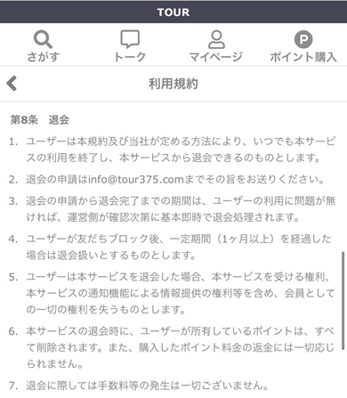 TOUR(ツアー)公式による退会方法の案内